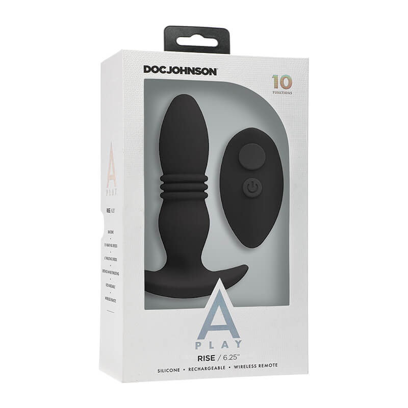 The A-Play RISE is a premium quality vibrating and thrusting anal plug, conveniently controlled directly on the product or via the included wireless remote. A-Play is Doc Johnson’s high-end line of performance anal plugs, created with a variety of sizes and special features to promote anal pleasure and exploration for users of every experience level. Each product in the A-Play collection is USB rechargeable, waterproof, and includes a charging cable and fabric storage bag.