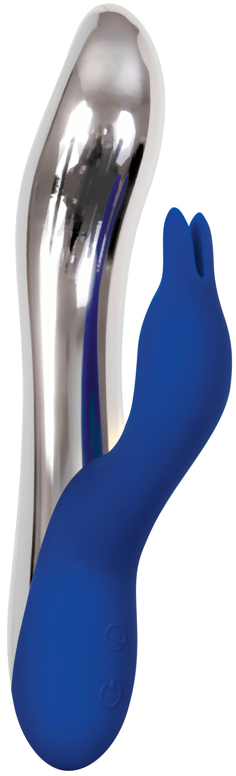 Features & Benefits: Light-up rabbit vibrator with metallic finish Targets dual erogenous zones for powerful orgasms Made from luxurious silicone & chrome-finished plastic Chrome shaft lights up to a beautiful blue Two robust motors, one in shaft, one in clitoral piece Shaft gently curved for G-spot exploration 10 Distinct vibrating functions Phthalate & latex free Fully rechargeable, USB cable included Completely waterproof and submersible