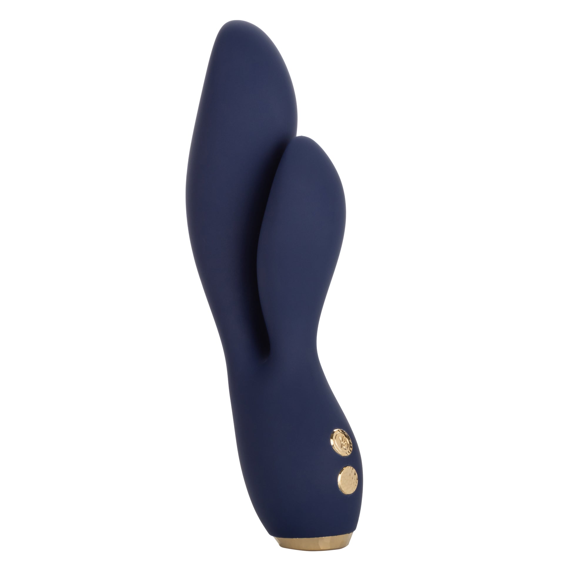 This high-powered rabbit massager is created with a curved G shaft and a naturally contoured stimulator to envelope your most intimate curves. An intense motor inside of the flexible shaft and another inside the teaser have rumbling vibrations for playfully powerful stimulation. Indulge in personalized pleasure while the curved shaft and teaser shimmies to the rhythm of 10 synchronized vibration speed levels. Control this variety of orgasmic options with the easy-touch control button. The flexible massager is made from a hygienically superior silicone with dazzling gold plated decorative accents. Whether youre taking a dip with a lover or indulging in a steamy solo session, look forward to up to 150 minutes of waterproof vibration. Recharge pleasure and get back to playtime in only 2.5 hours with the provided USB cable. To take your pleasure to-go, a security travel lock feature requires you to hold the on/off button for 3 seconds to turn on or off.