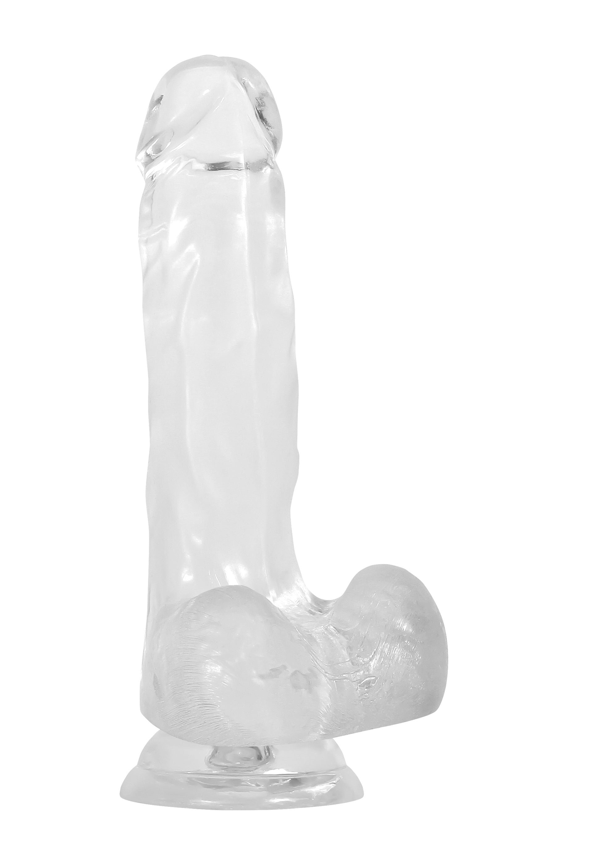 Crystal clear large dildo Realistic, life-like craftsmanship Suction cup base for hands-free play Length: 7.25 (18.42 cm), Depth: 2.9 (7.37 cm), Width: 2.7 (6.86 cm) Insertable Length: 5 (12.7)
