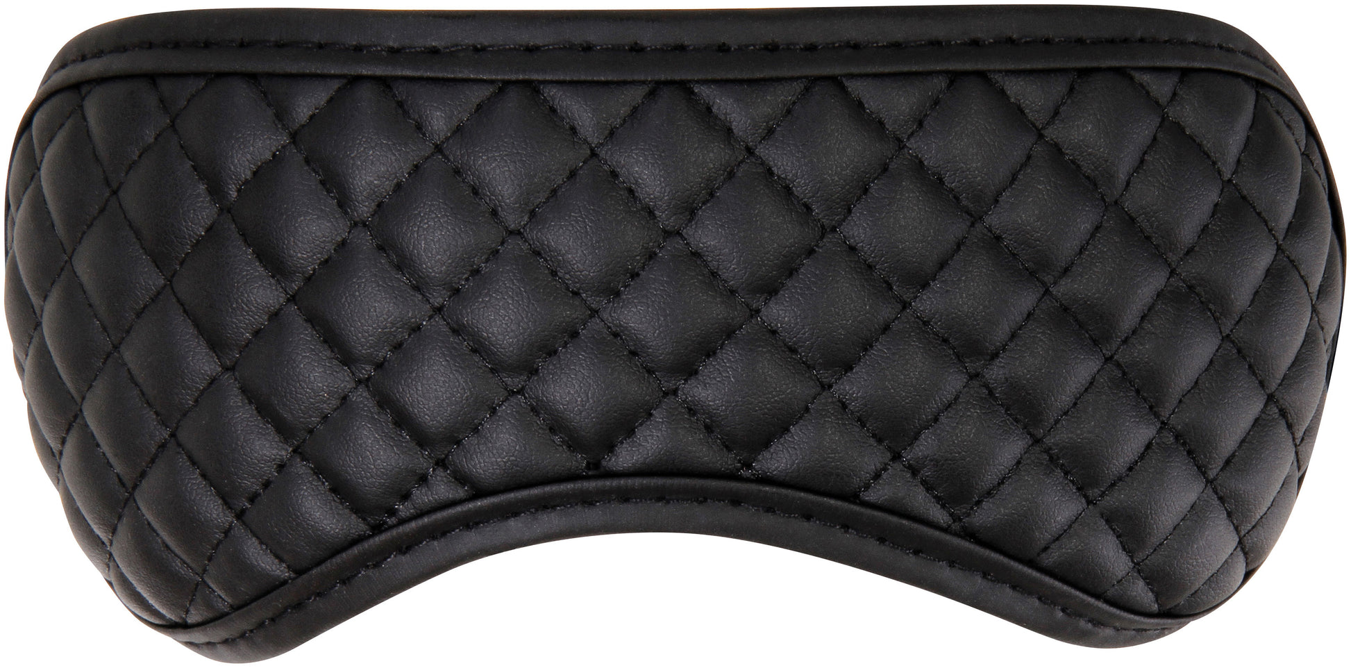 There's no peeking as a curved shaped fits your face beautifully - your heart races as you await sexy sensatiions to come! Blindfold intesifies your other senses Soft padded diamond stitched pattern Elastic strap stays comfortably secure 7" x 2.89" mask provides full coverage Made from satin smooth vegan leather
