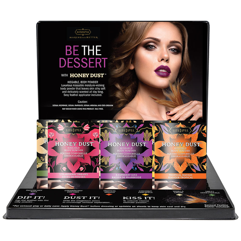 Delicious, kissable body dust Lightweight formula wicks away moisture, leaving skin soft and smooth Six irresistible flavors, each imparts a delicate fragrance on the skin Use anywhere on the body