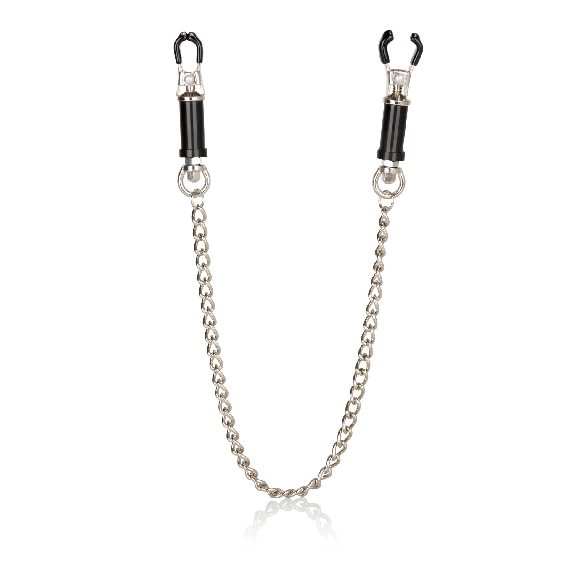 Includes 2 fully adjustable multi-use clamps. Soft, comfortable pads that are made of phthalate-free pvc material. Sturdy high-quality dual chain for added sensuality. Nickel-Free Iron (chains).