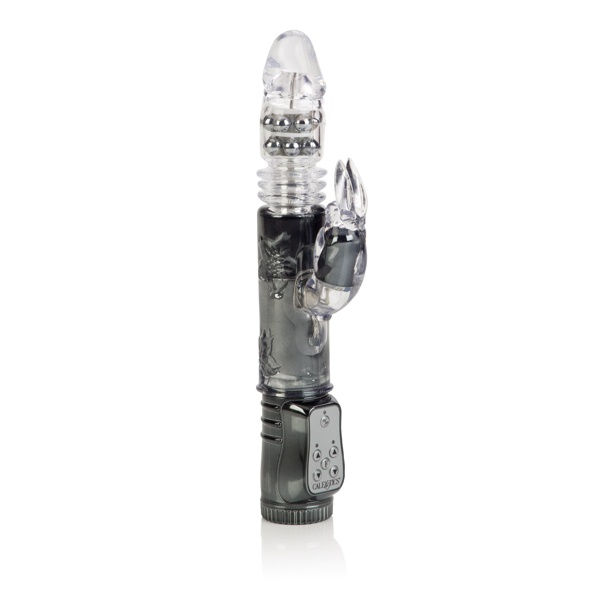 This bunny featues dual motors - one in the shaft and one in the bunny teaser - to tickle your clit and tantalize your g-spot all at once. The Thrusting Orgasm Jack Rabbit has eight independent speeds of vibration and thrusting action to hit all the right spots in exactly the way that sends you shooting to earth shattering orgasms.