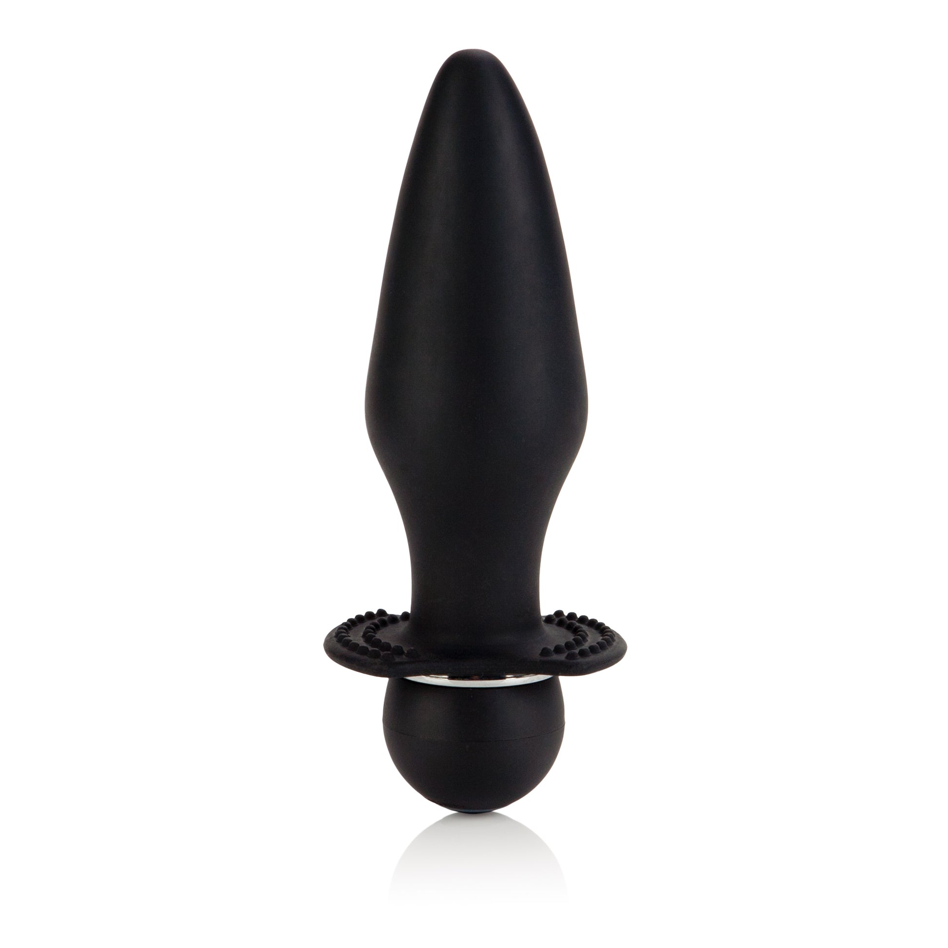 Soft and smooth, vibrating Silicone probe with nubby base. 10 powerful functions of vibration, pulsation and escalation. Made with premium body safe phthalate free silicone. Push-button control with LED light that you must hold for 3 seconds to turn off.